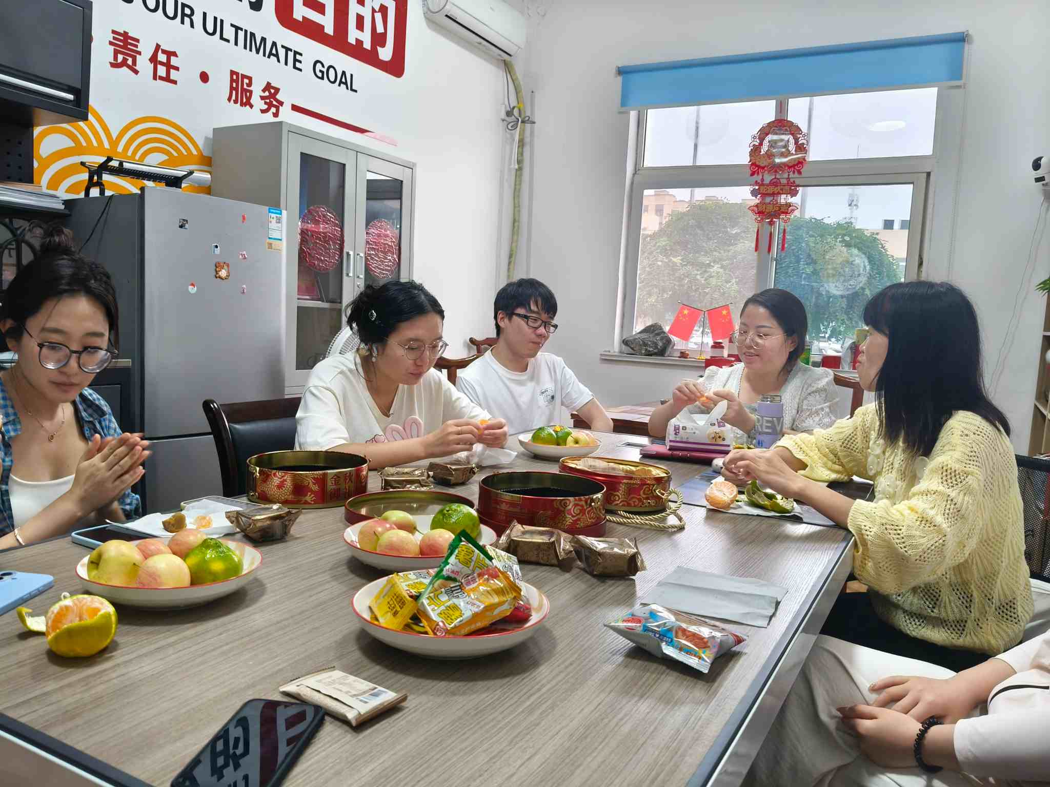 Tänään iltapäivällä johtaja WuZemeijiaValmistettu herkullinen iltapäivätee, mukaan lukien välipaloja ja hedelmiä. Kaikki nauttivat lämpimästä iltapäiväteetä yhdessä.