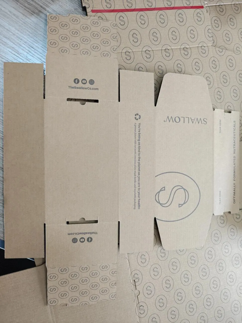 Luonnolliselle voimapaperille painetulla mustalla logolla on tällä hetkellä erittäin suosittu puhdas, terävä ulkoasu. Mutta kyse ei ole vain estetiikasta; Keskityimme voimakkaasti myös rakenteellisiin yksityiskohtiin. Jos tarkistat kuvia tasaisista asetteluista ja kootuista laatikoista, näet kuinka tarkkoja taittoviivat ovat.